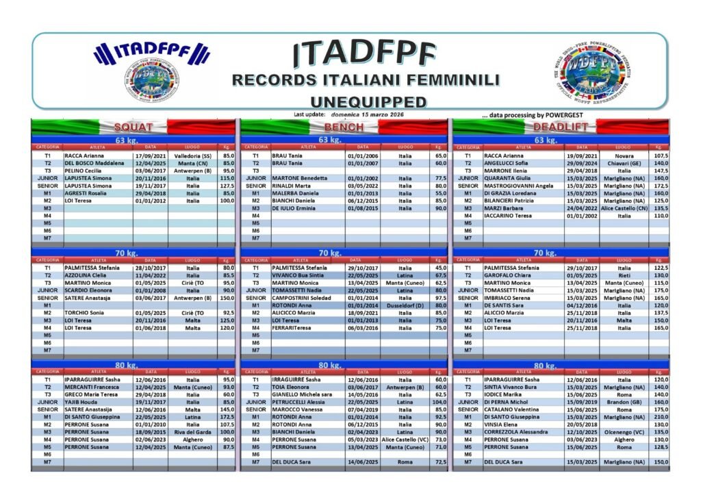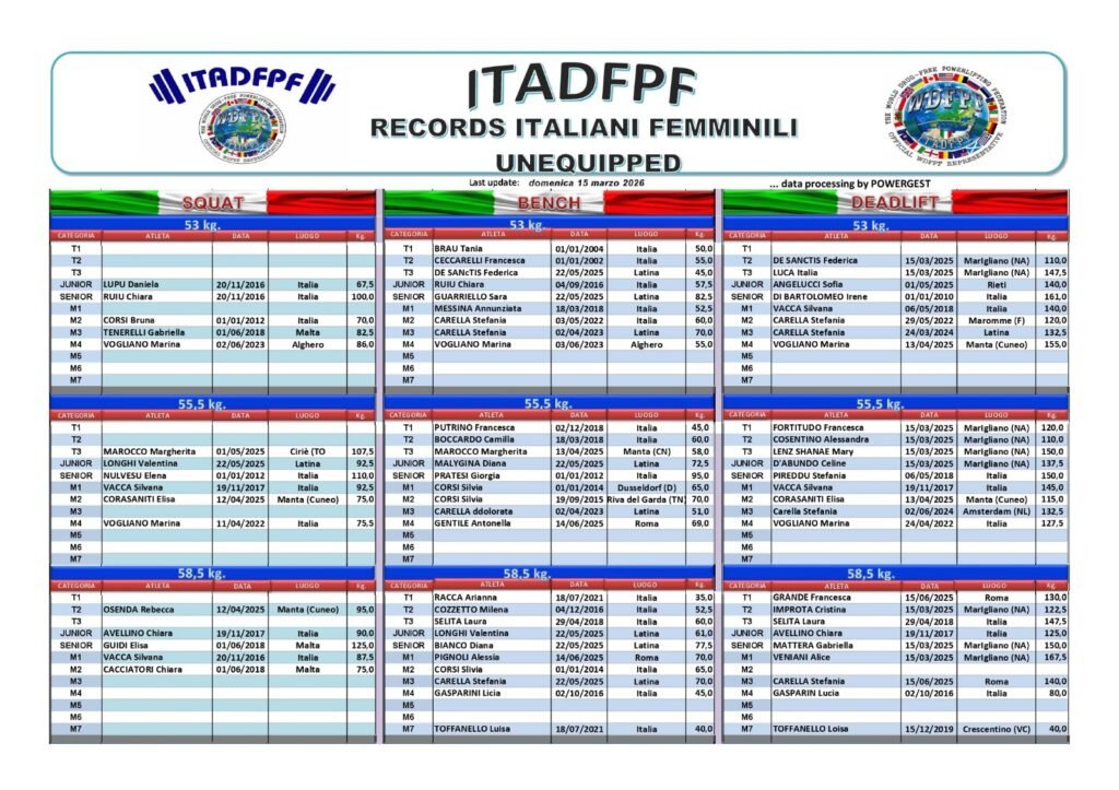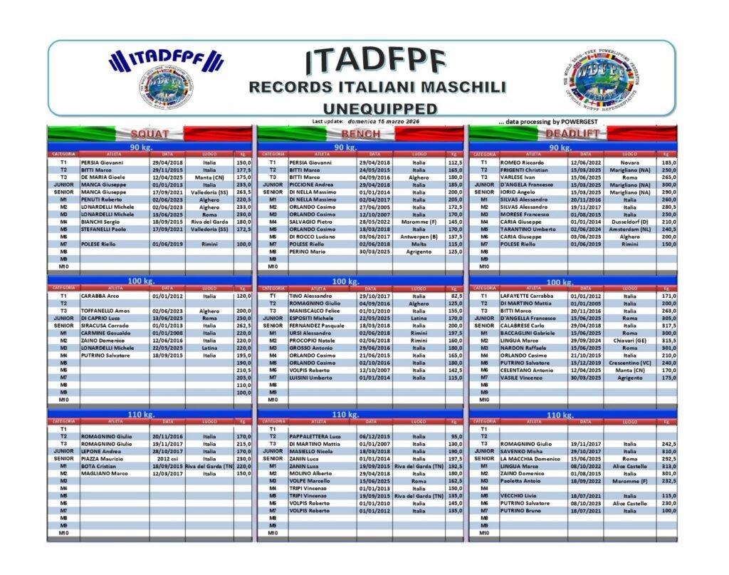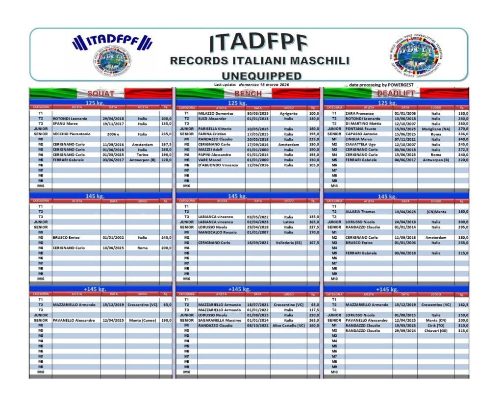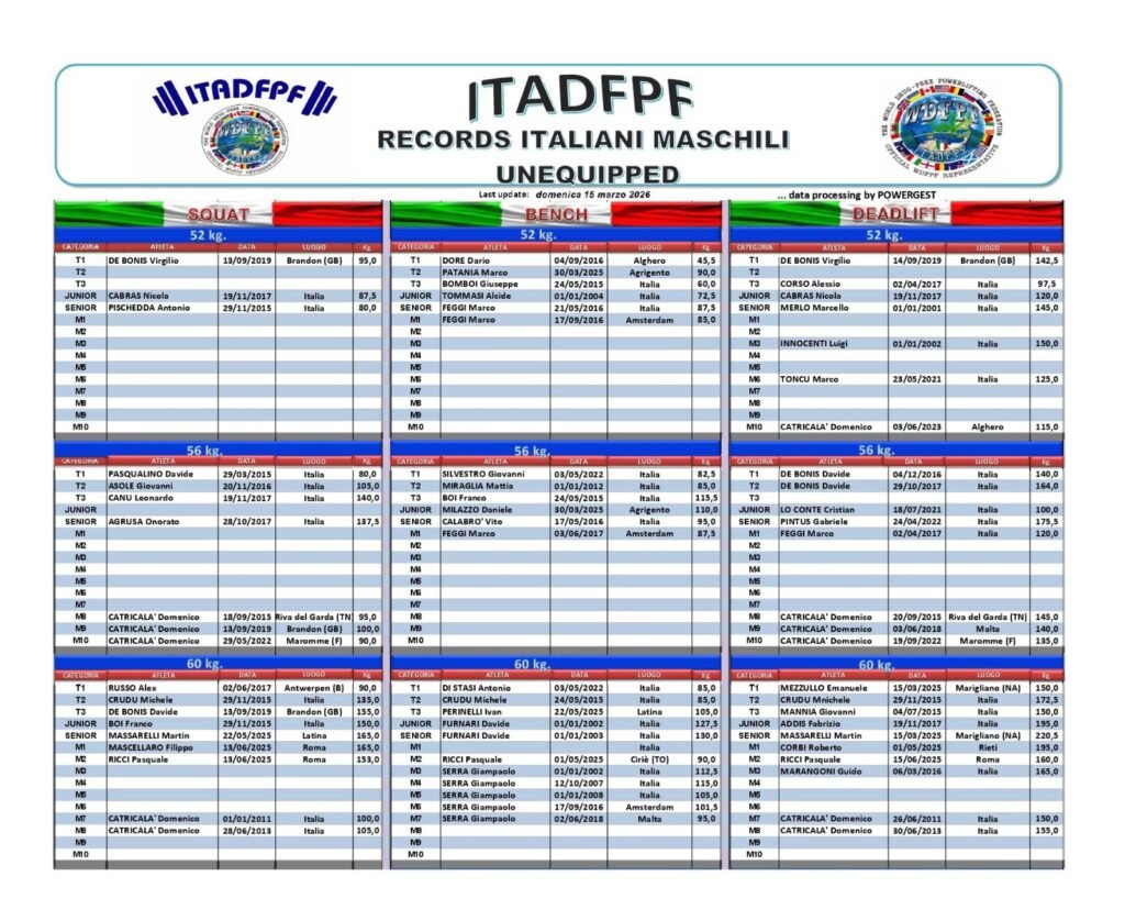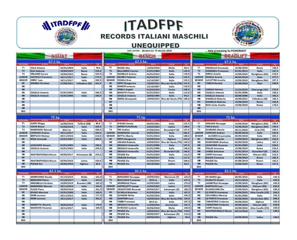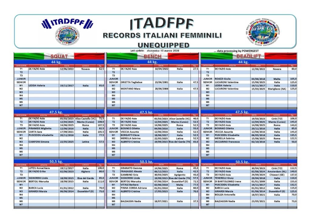 Tutti i Record Italiani ITADFPF Raw e Equipaggiati